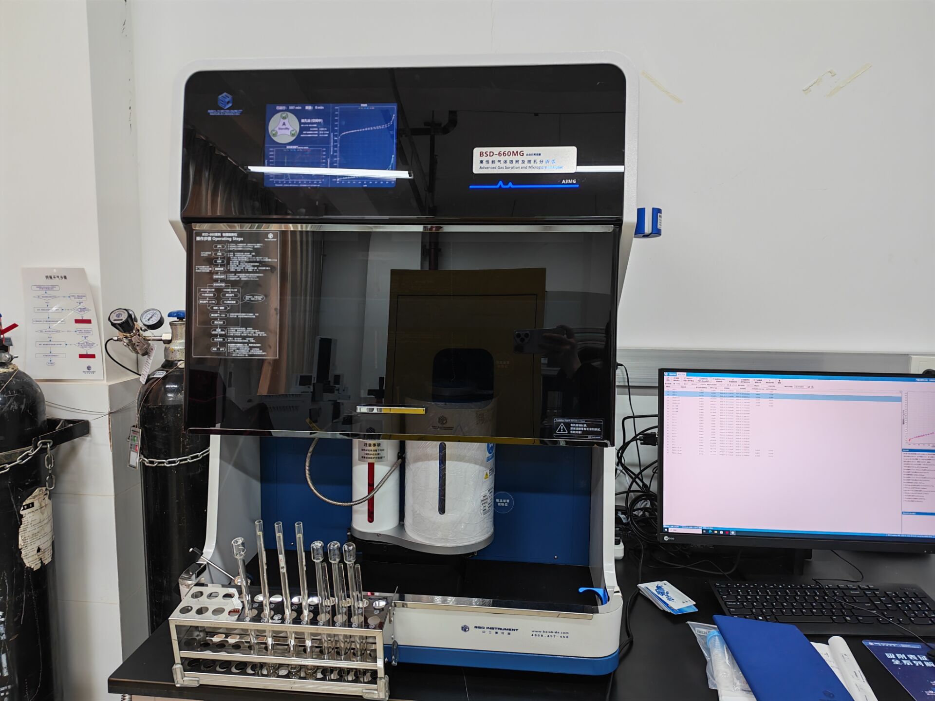 仪器参数:测试范围: 比表面积0.0005 ㎡/g以上,孔径0.35-500 nm; 重复性: 比表面积、孔径、孔体积、吸附量,定量误差<0.5%RSD(以标准样品BET值计)