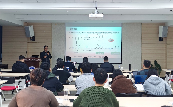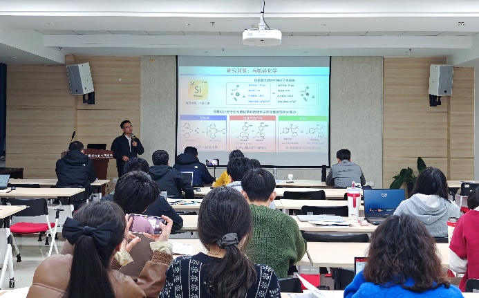 刘路教授做了题为“卡宾参与的绿色精准合成”的学术报告。他首先介绍了在全球的资源短缺以及环境污染的背景下,发展高效率、高选择性的绿色有机合成反应,对促进化学合成的可持续发展具有重要意义。随后,刘路教授针对课题组研究项目进行了重点介绍,他表示,主要集中在发展高化学、区域、对映选择性反应,利用卡宾中间体,实现对一些化学键,尤其是惰性σ化学键的精准编辑。这种方法提高反应的效率以及减少化学合成中的废物产生等方面具有显著的优势,同时能够有效的合成一系列具有生物活性的分子或对药物分子进行后期修饰。