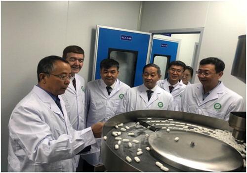 在中科院新疆理化所副所长、中心主任阿吉艾克拜尔·艾萨研究员的陪同下,苏荣辉副局长一行先后参观了中心成果转化基地(包括口服制剂GMP生产车间和中医临床研究基地)、乌兹别克斯坦科学院生物有机化学研究所、乌兹别克斯坦科学院植物化学研究所以及与该所共建的“天然药物提取中试平台”。