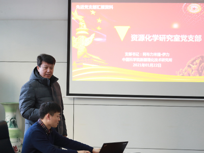 资源化学研究室党支部书记阿布力米提·伊力汇报。