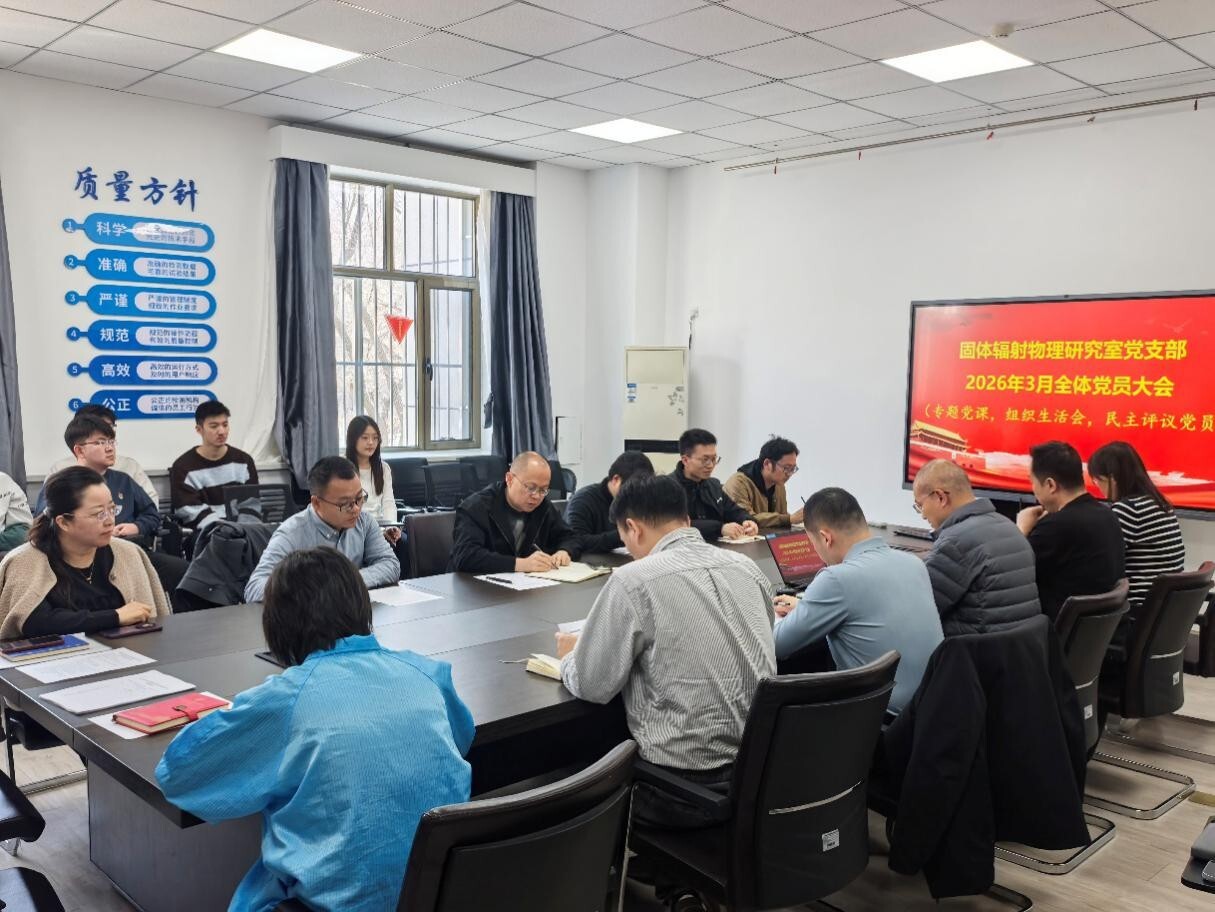 3月23日,固体辐射物理研究室党支部开展2025年度组织生活会暨民主评议党员会议,联系支部的党委委员、副所长周喜,纪委委员张博到会指导。党支部高度重视本次组织生活会,要求会上全体党员结合个人实际工作认真查摆问题,自我批评对照贯彻落实中央八项规定精神情况,重点查找自身党性问题、作风问题、遵规守纪问题,确保查摆问题到位。会议由支部书记文林主持,党委委员、副所长李豫东以一名普通党员身份参加会议,支部其他党员集体参加。