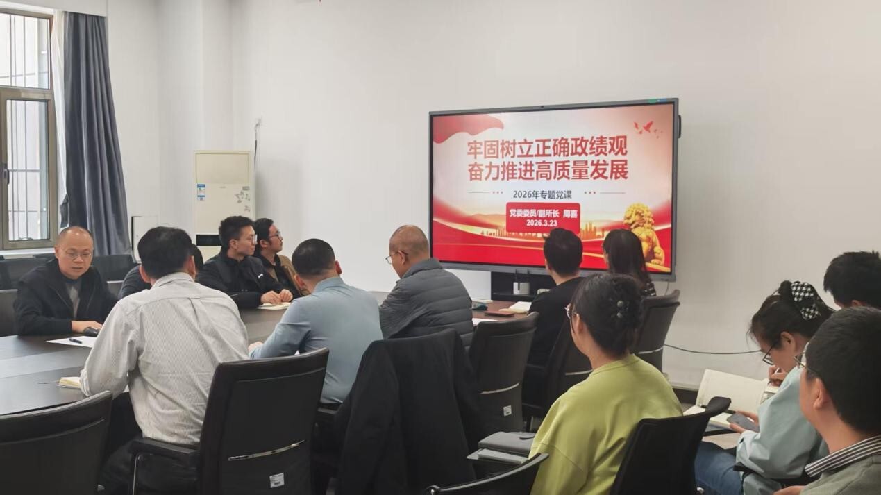 会上,周喜作《牢固树立正确政绩观 奋力推进高质量发展》专题党课,要求全体党员树立正确政绩观,坚持正确的政治方向,坚持以人民为中心,坚持以上率下,坚持担当实干,努力推动科研高质量发展。