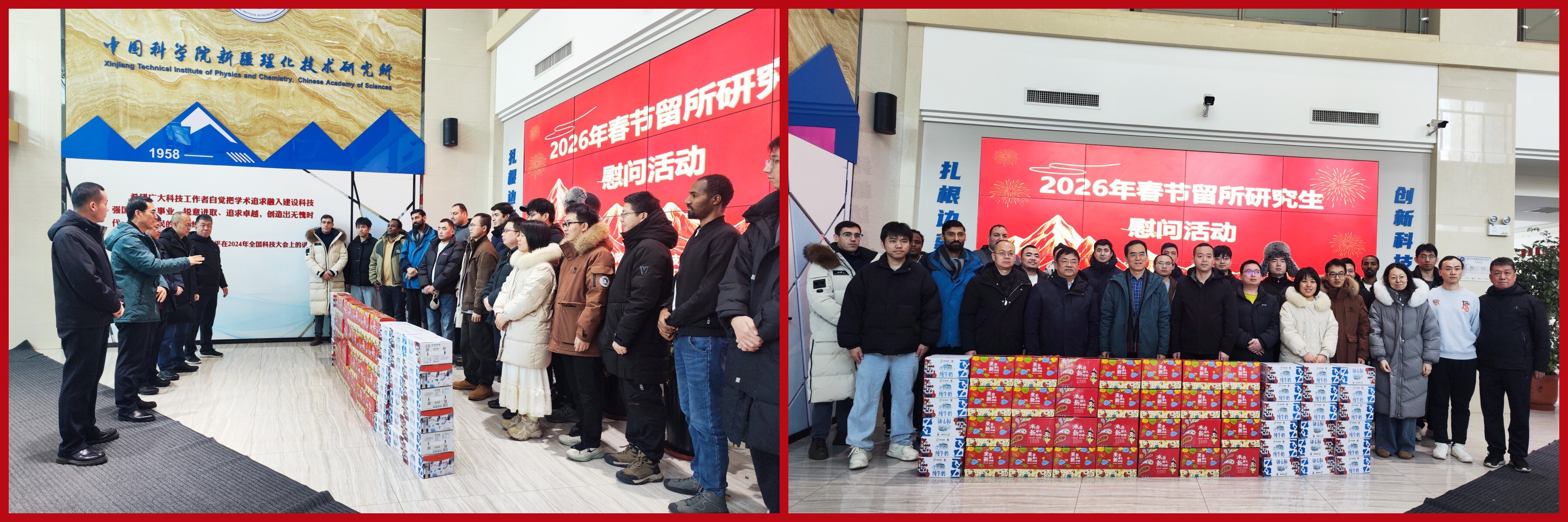 2月14日研究所组织开展春节留所学生慰问活动,为他们送去节日的关怀与温暖。慰问现场,所长潘世烈、党委书记孙正文、副所长周喜和李豫东与春节留所学生们亲切交流,叮嘱同学们注意假期安全、合理安排作息,鼓励中外学生互帮互助、安心留所,充分利用假期充实自我。随后,工作人员为每一位留所学生发放了春节礼包,每一份礼包都承载着研究所的关怀与祝福,让留所学生在异乡也能感受到家的温暖,切实增强了学生们的归属感和幸福感。
